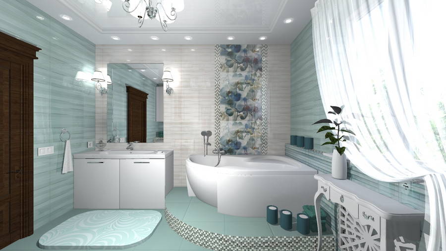 Коли технічний етап завершено, приступаємо до творчішого розділу дизайну майбутнього інтер'єру. Підбираємо меблі - пенали, полиці, шафки, мийдодир та аксесуари для ванної кімнати. Розглядаємо варіанти керамічної плитки. Дуже важливо, щоб сантехніка, меблі та плитка гармонійно поєднувалися між собою за кольором та стилем. А всі аксесуари, це різна фурнітура, змішувачі, сушки для рушників були одного покриття, наприклад - латунь, хром, сталь або бронза. Важливо гармонійне поєднання деталей із загальним дизайном.